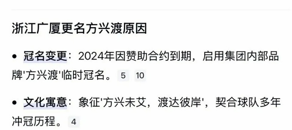 广厦总经理在近期接受采访时更表示现在还没有找到新的赞助商。直言这是一个痛点,而且不理解为什么会是这个样子,浙江也是一个篮球大省,但现在确实没有找到赞助商,目前是在和几个区一起合作,还在谈基地落户的问题,包括很多东西都在商谈中。事实上广厦男篮声明的方兴渡也是集团内部文旅品牌,本来也只是想着临时冠名,我到现在都还没有找到新的赞助商。