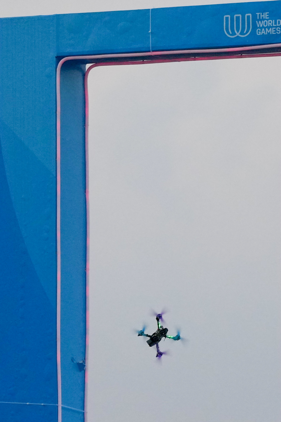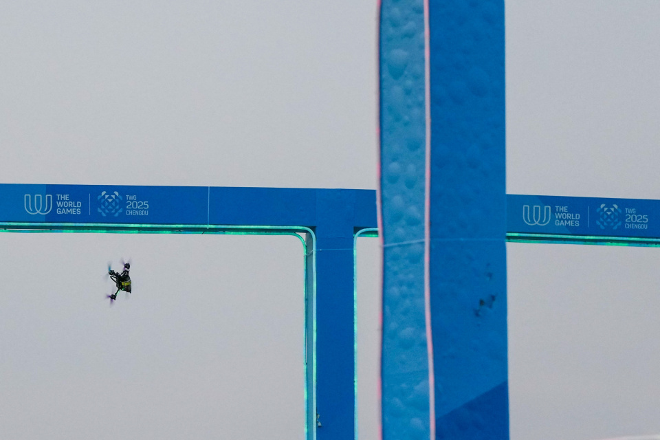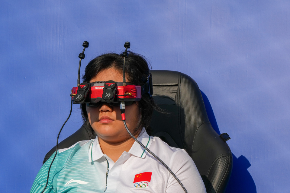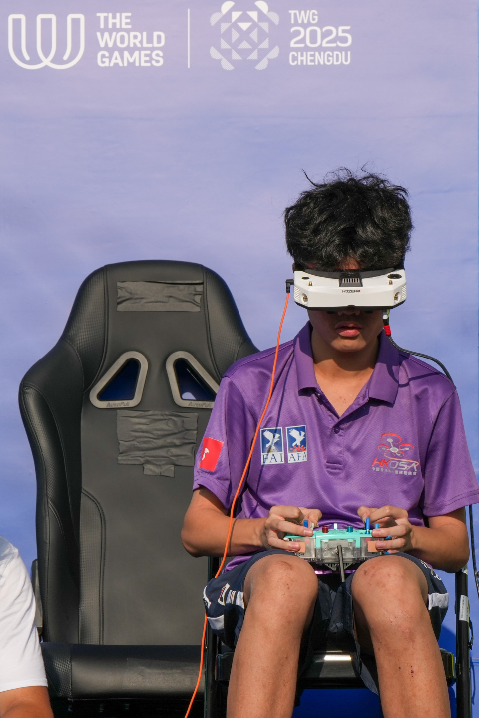 8月15日,中国香港选手关竣仁在比赛中操控无人机。新华社记者 李博 摄