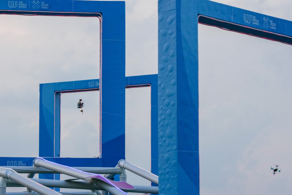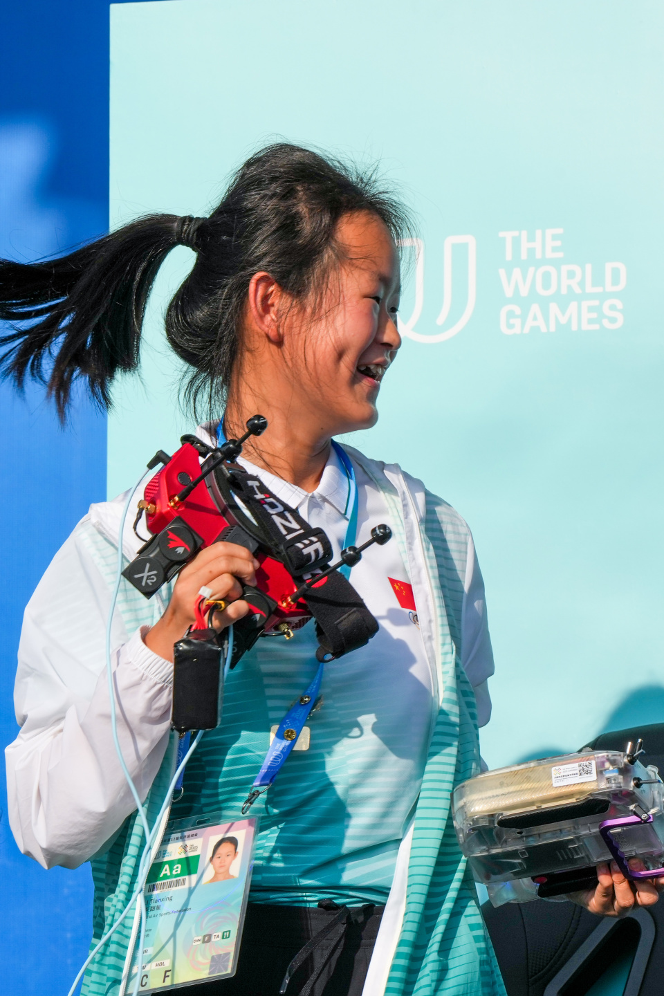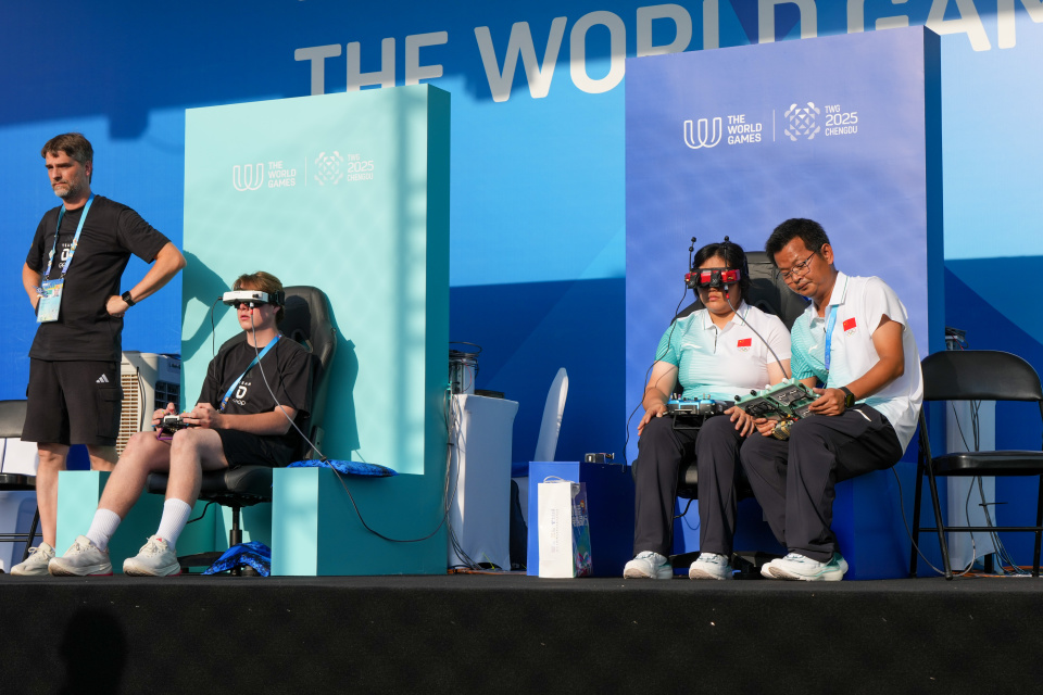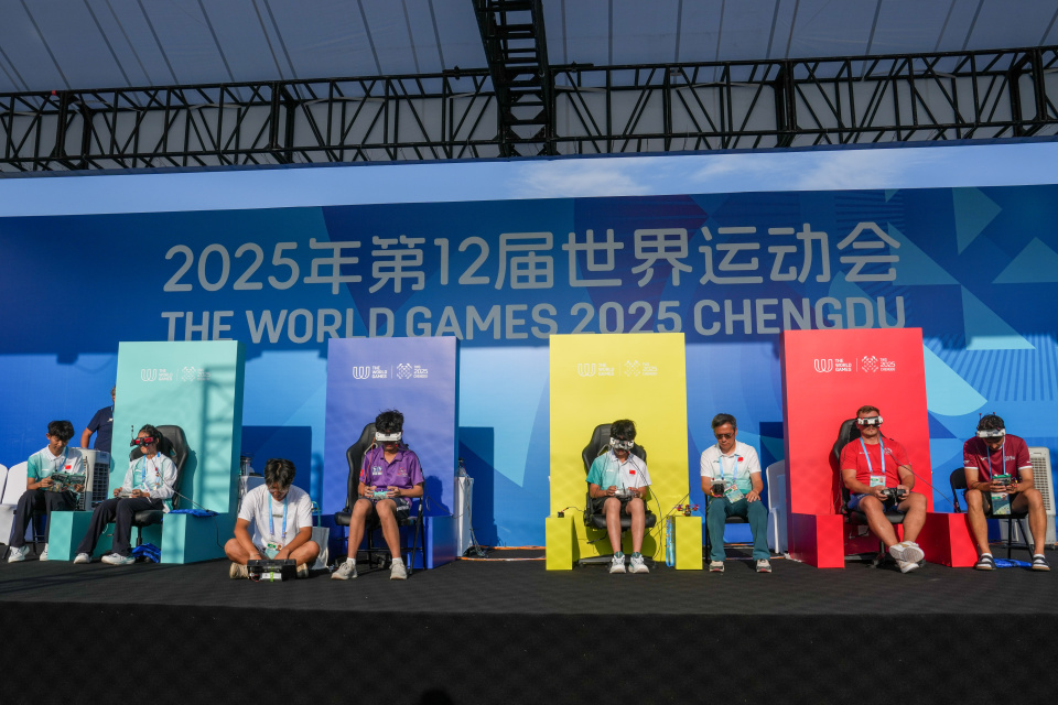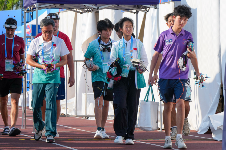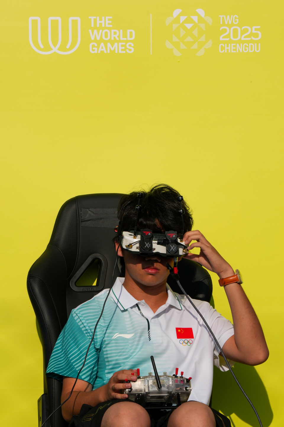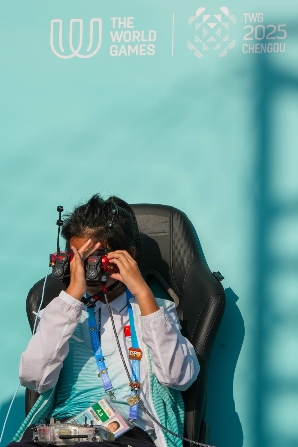 当日,在2025年成都世运会无人机竞速比赛在东安湖体育公园室外田径场举行。8月15日,中国选手黄悦祺在比赛前准备。新华社记者 李博 摄